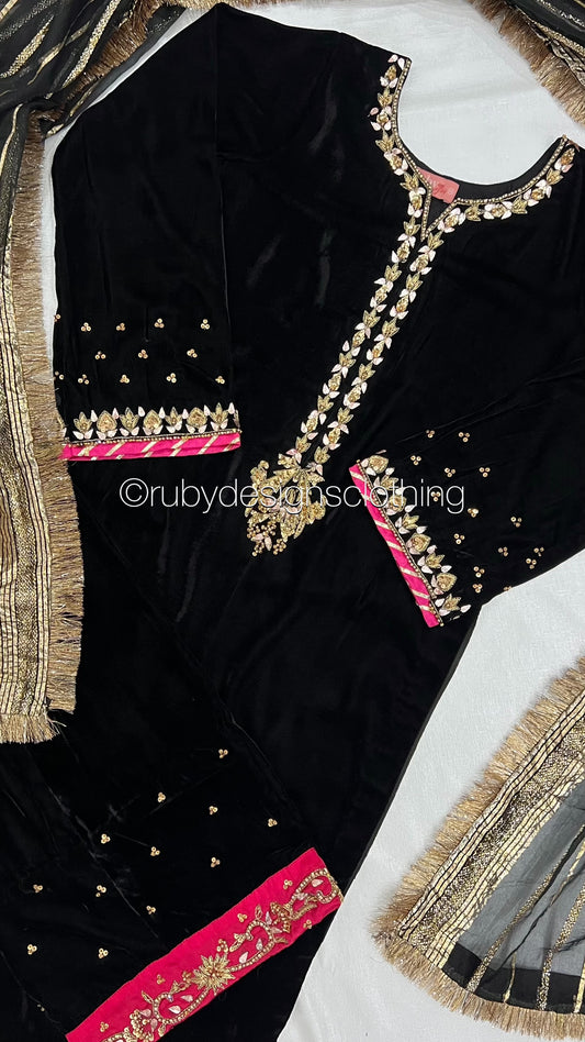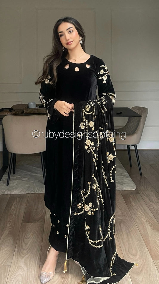 RAISA Black - 3 Piece Luxury Velvet Suit with Heavy Embellished Shawl