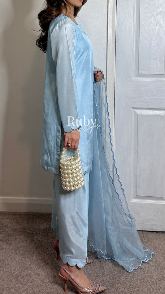 HAYAT Sky - 3 Piece Silk Suit with Skinny Shalwar