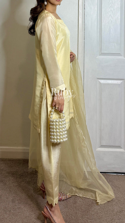 HAYAT Butter - 3 Piece Silk Suit with Skinny Shalwar