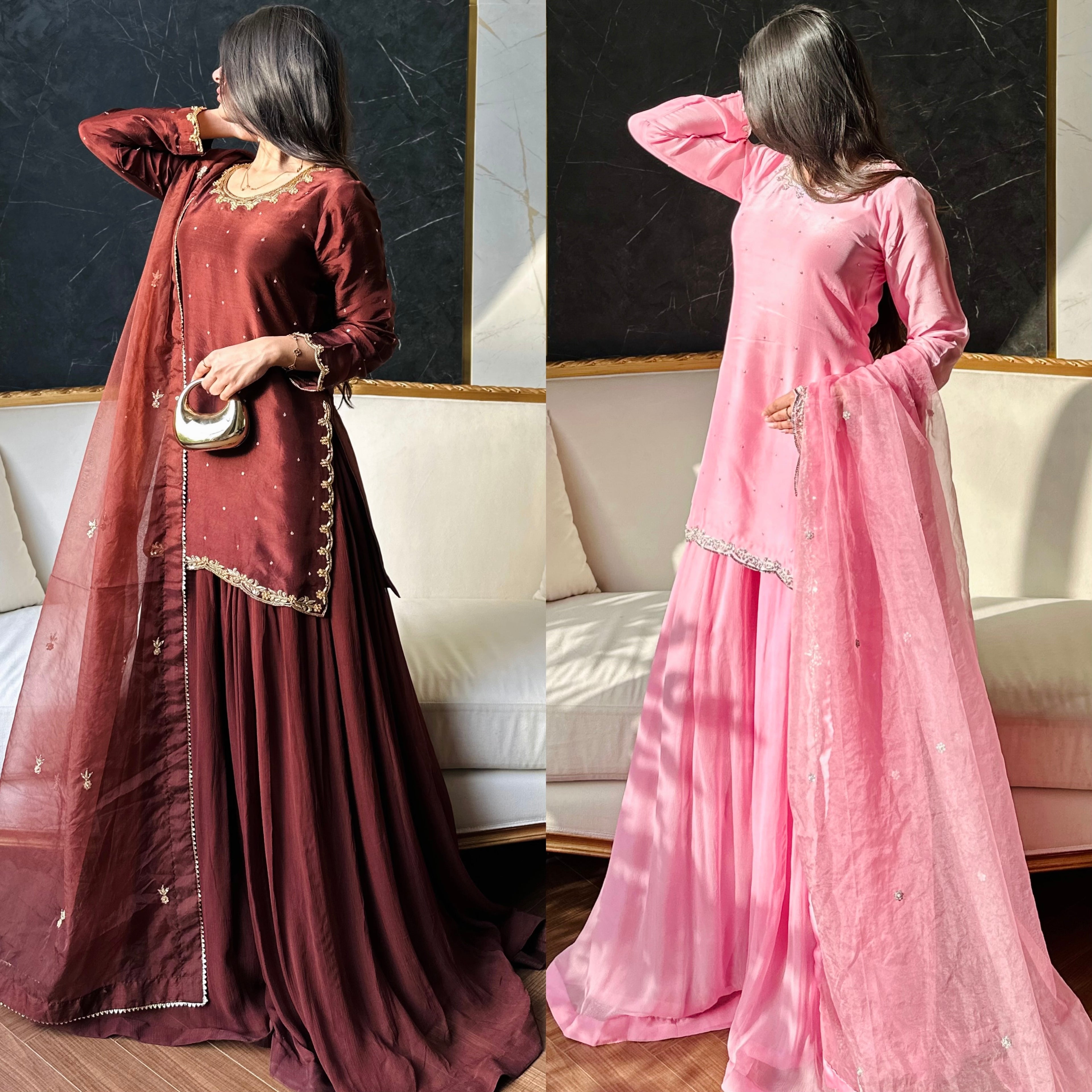 We house unique suits, designed by ourselves, and brought to life by our very own tailors in Pakistan. We aim to bring you beautiful Pakistani suits, whilst providing exceptional customer service to give you the best desi shopping experience!