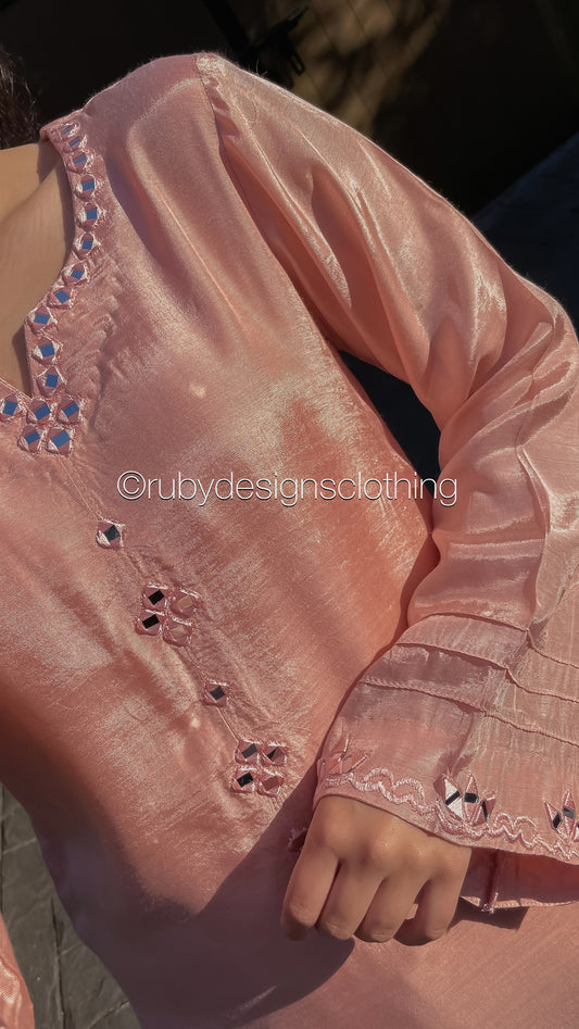 • ALIZEY Blush - 3 Piece Blush Pink Silk Suit with Organza Dupatta (8559614820565)