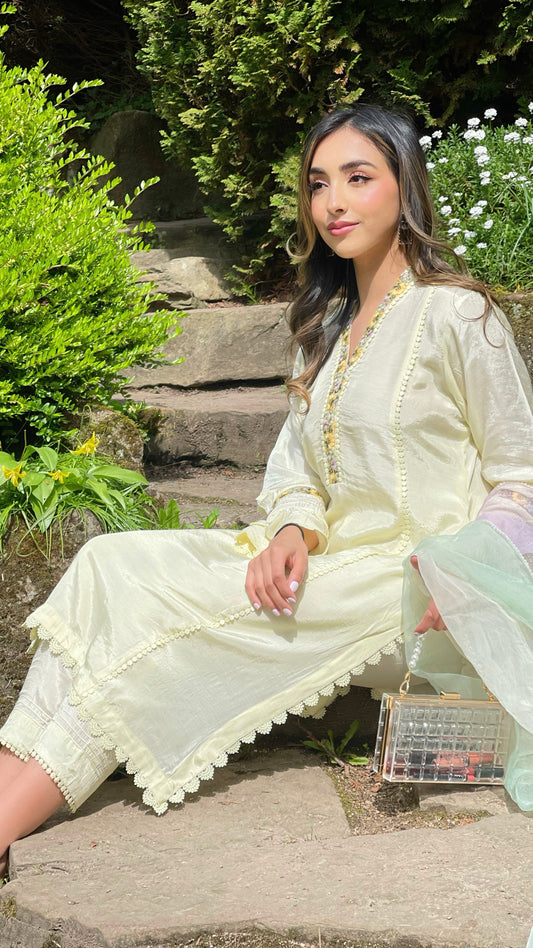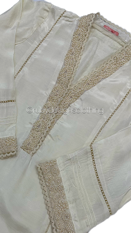 EXCLUSIVE SAMPLE - NURA 2 Piece Off-White Cotton Silk Suit