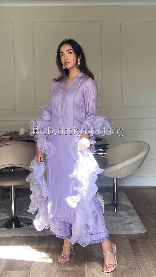 • AYLA Lilac - 3 Piece Lilac Cotton Silk Suit with Ruffle Organza Dupatta (8068266361045)
