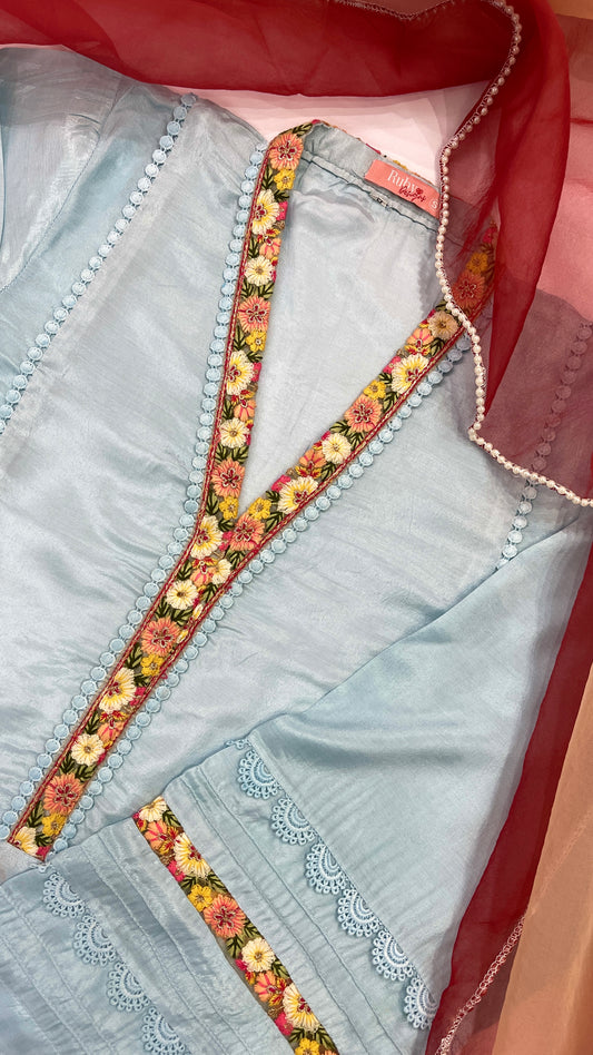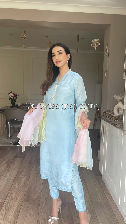 ALIZEY Sky - 3 Piece Sky Blue Silk Suit with Organza Dupatta