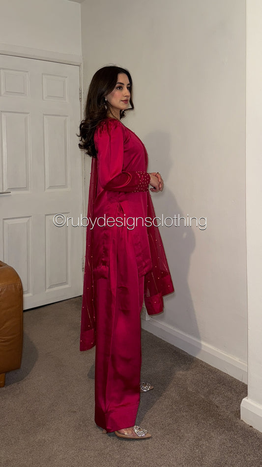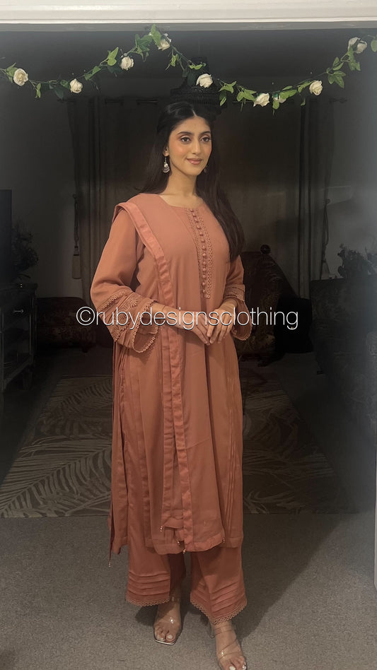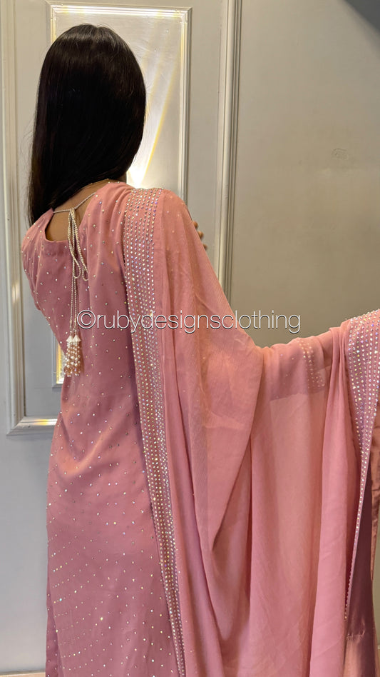 LEENA Rose - 3 Piece Chiffon Suit with Stonework