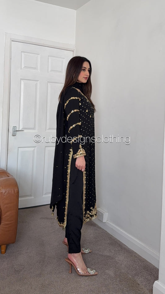 ZAREEN Noir - Luxury 3 Piece Chiffon Suit with Gold Handwork