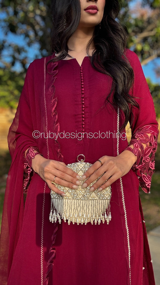 NAILA Berry - 3 Piece Chiffon Suit with Cutwork Detail