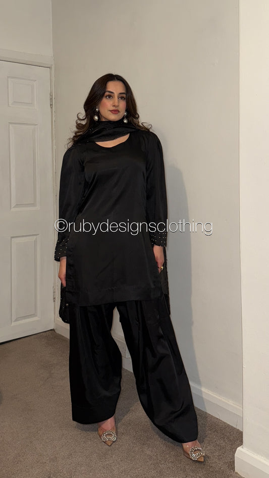 LEENA Noir - 3 Piece Chiffon Suit with Stonework