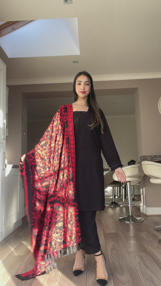 ZOYA - 3 Piece Black Marina Suit with Heavily Embroidered ShawlRegular price R$ 325,00 BRLRegular priceUnit price / per-