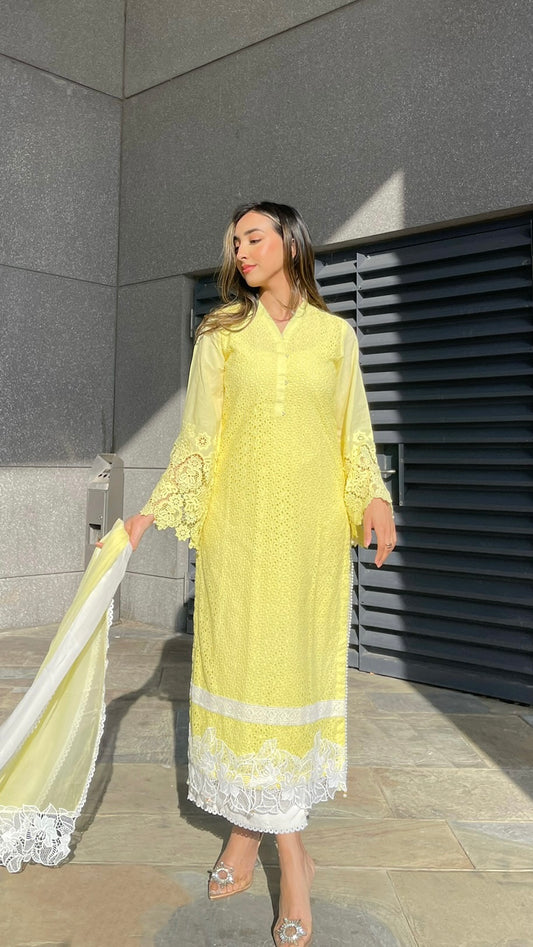 ELIZA Lemon - 3 Piece Yellow Chikankari Suit with Ombré DupattaRegular price R$ 506,00 BRLRegular priceUnit price / per-