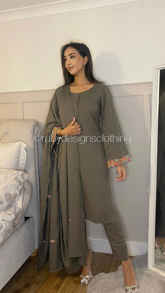 HENNA - 3 Piece Khaki Marina Suit with Mirror WorkRegular price R$ 397,00 BRLRegular priceUnit price / per