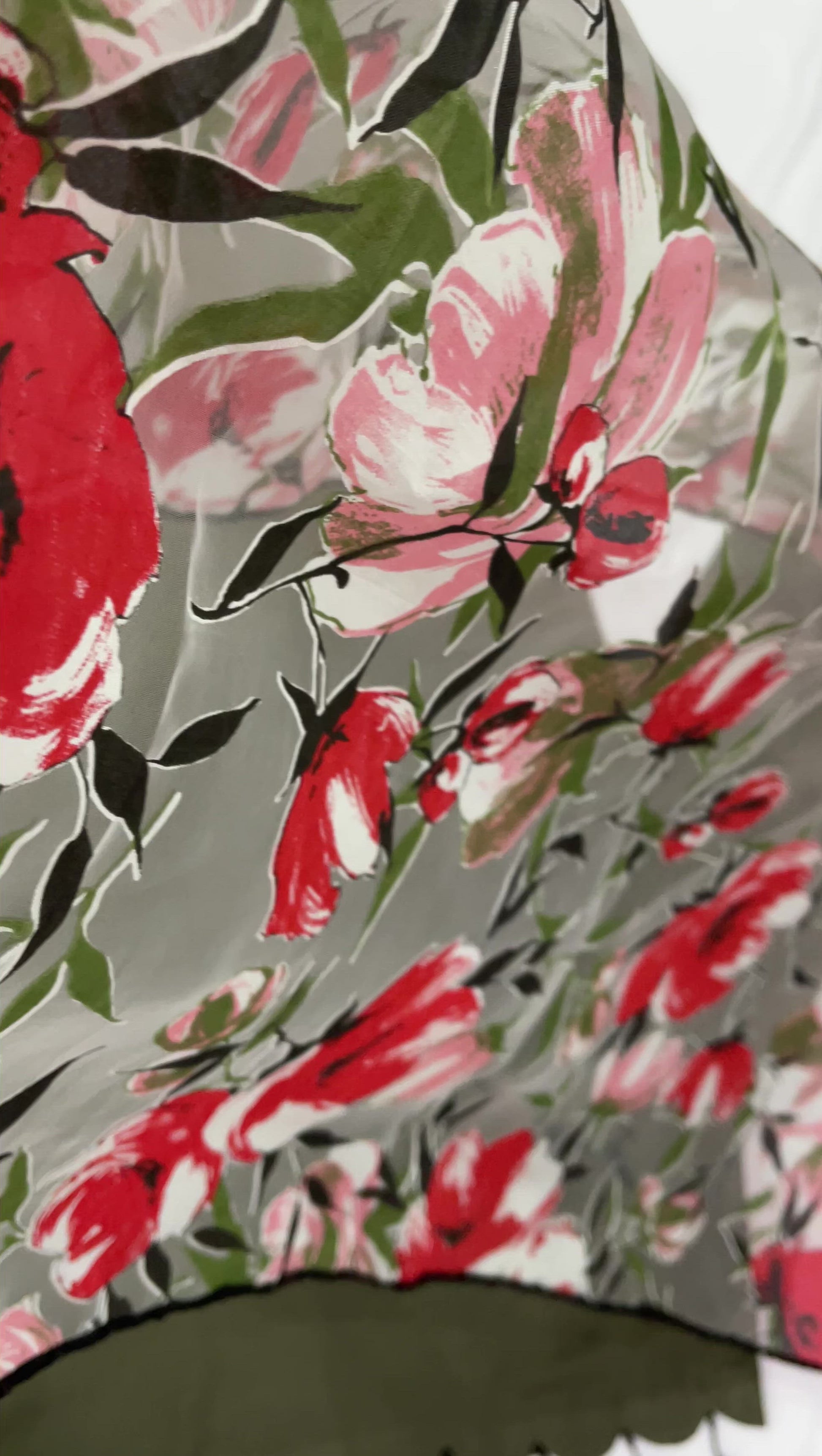 This beautiful marina outfit is a wardrobe must-have! A stunning colour combination of khaki and red, with pretty scallop edges, paired with a show-stopping statement floral print organza dupatta. Dress it up with some heels or keep it casual with some flats!