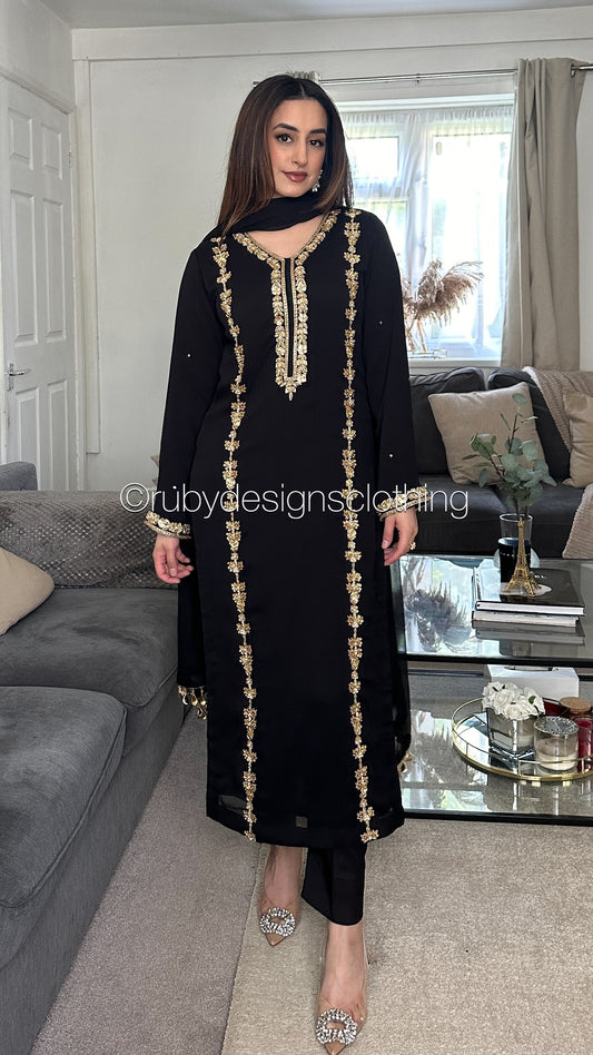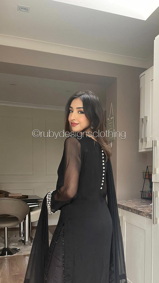 • ARWA - 3 Piece Black Chiffon Suit with Chiffon Dupatta (8020991574229)