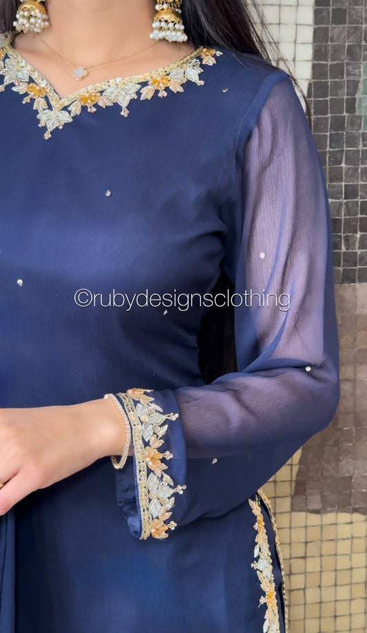 SONIA Navy - 3 Piece Navy Chiffon Suit with Chiffon Dupatta