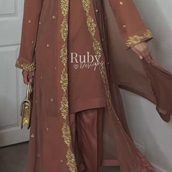 SORAYA - 4 Piece Chiffon Suit with Jacket and Gold Handwork