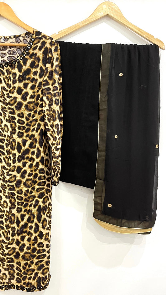 3 Piece Linen Leopard Print Suit with Mirror Details