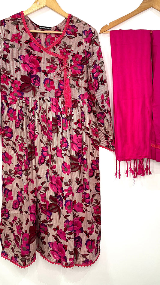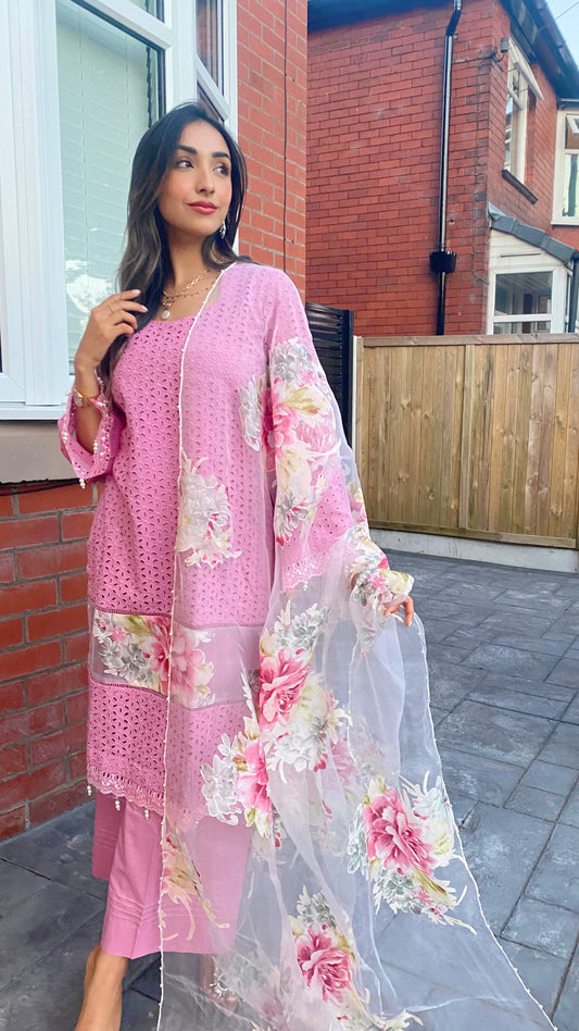 KINZA - 3 Piece Pink Chikankari Suit with Organza Dupatta