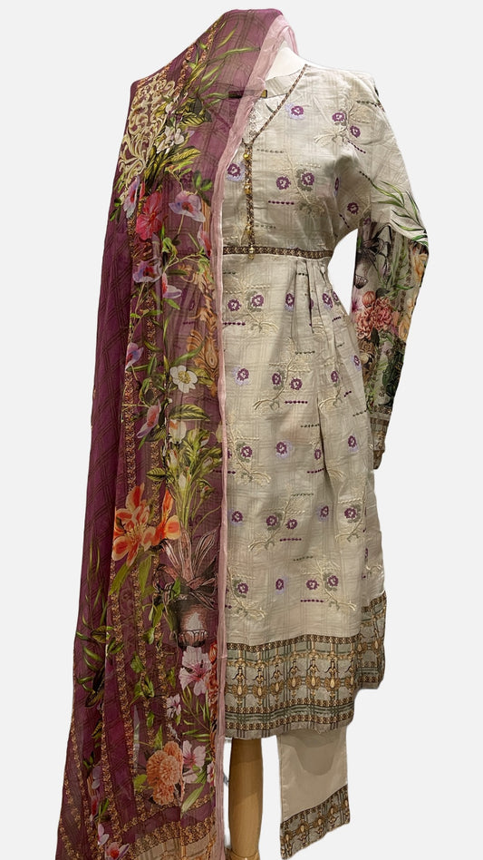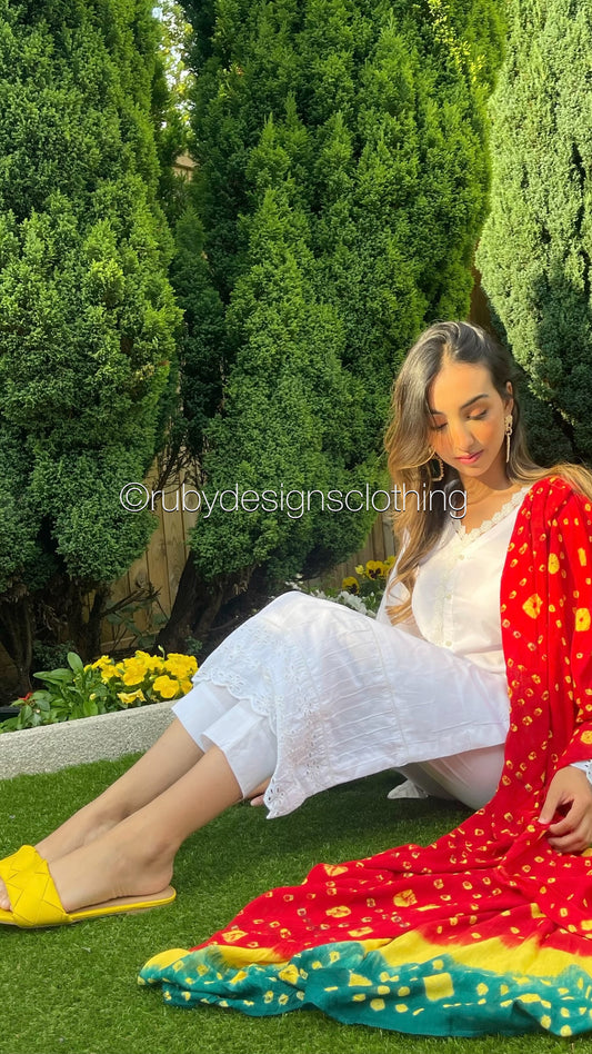 ALIA - 3 Piece White Cotton Lawn Suit with Chunri Dupatta