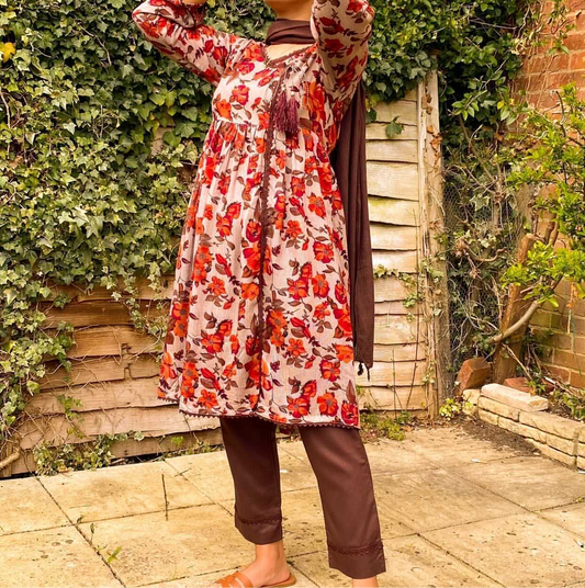 LABIBA - 3 Piece Linen Ajrak Suit with Bead and Sequin Details