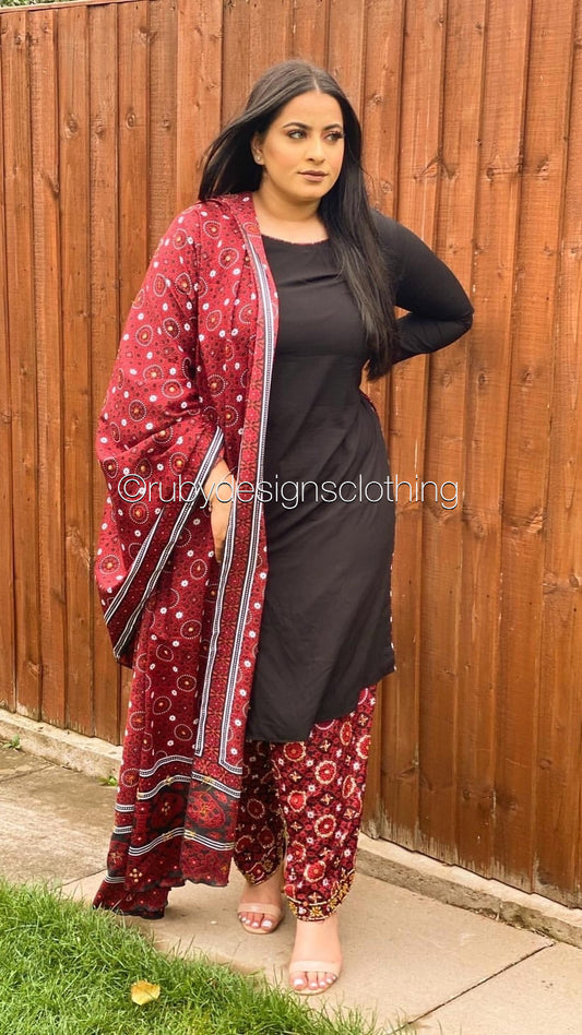 SHIZA Black - 3 Piece Linen Suit with Chiffon Dupatta