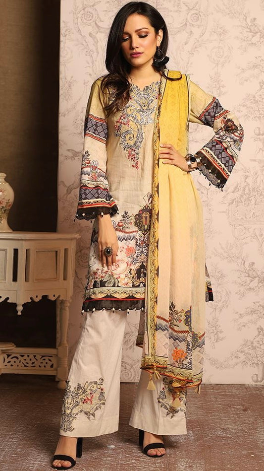 Original KHAS 3 Piece Stitched Yellow and Black Luxury Lawn Suit with Chiffon Dupatta