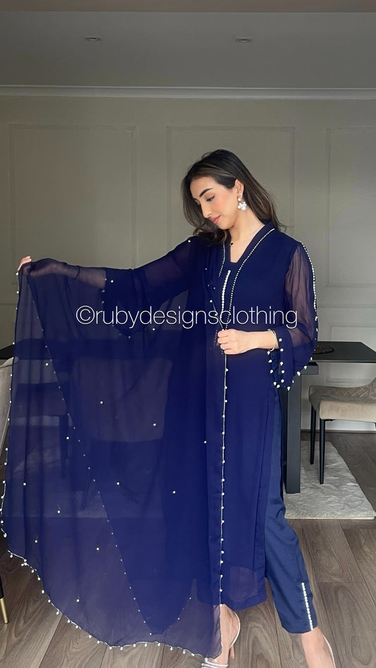 DUA Navy - 3 Piece Navy Chiffon Suit with Chiffon Dupatta and Pearls