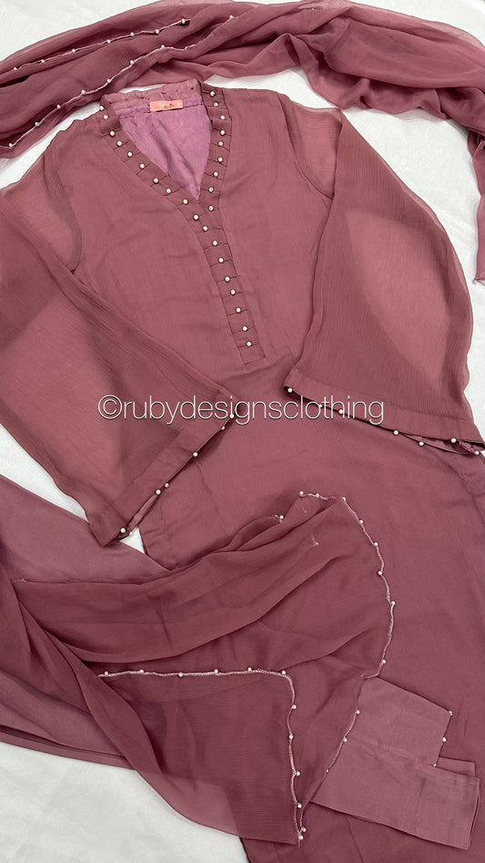 ARIA Rose (Eid Exclusive Limited Edition) - 3 Piece Rose Chiffon Suit with Chiffon Dupatta