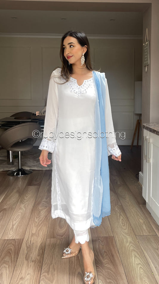 LIYANA - 3 Piece White Chiffon Suit with Two Tone Dupatta
