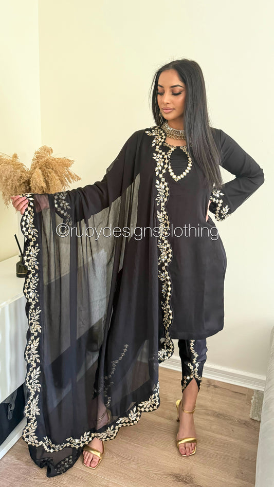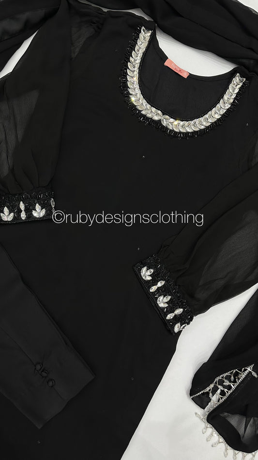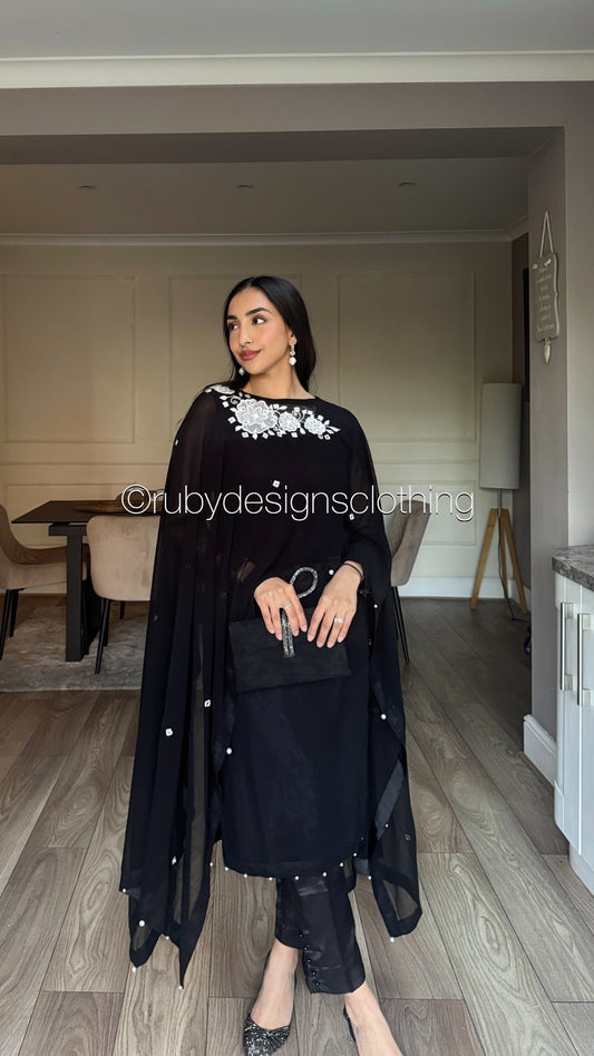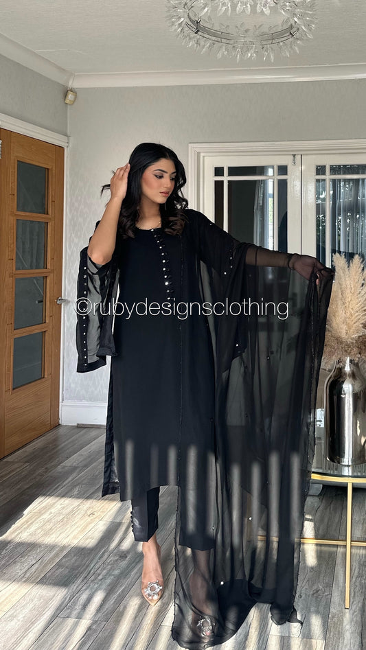 SERENA Black - 3 Piece Black Chiffon Suit with Chiffon Dupatta