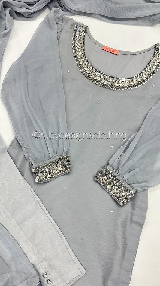 SERENA Grey - 3 Piece Grey Chiffon Suit with Chiffon Dupatta