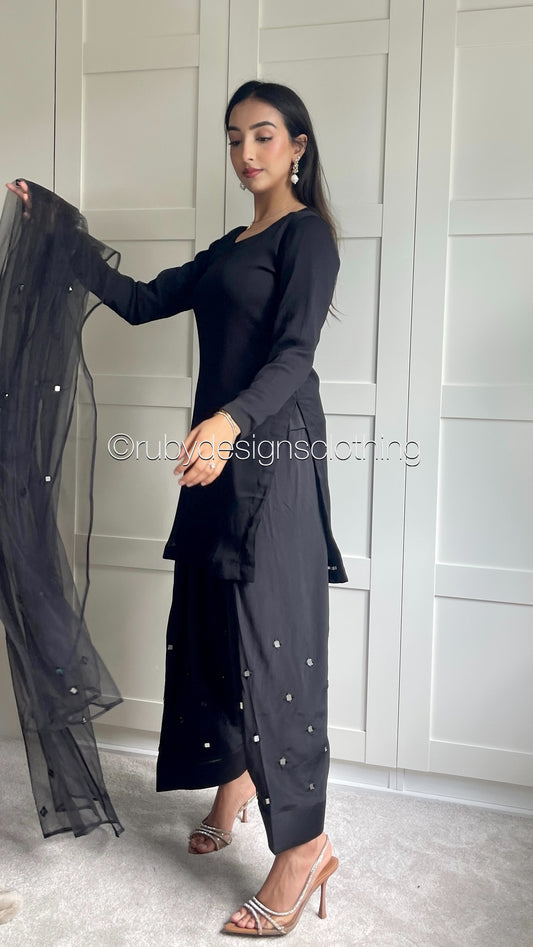 ALVIA Black - 3 Piece Black Chiffon Suit with Gold Handwork