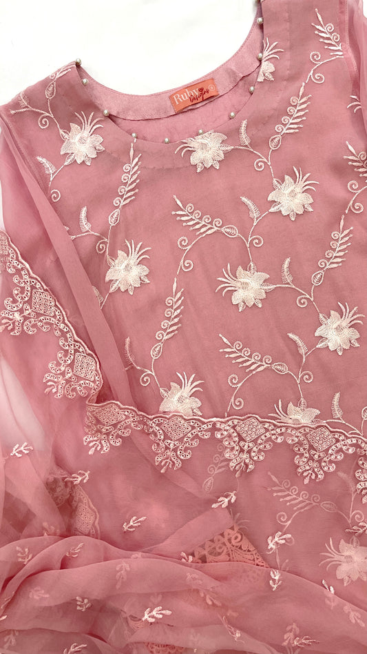 LEENA Rose - 3 Piece Chiffon Suit with Stonework