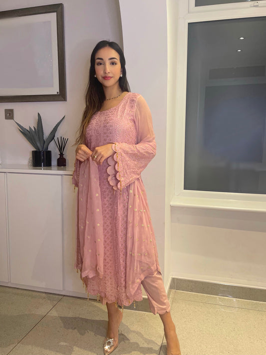 FIZA - 3 Piece Pink Chikankari Chiffon Suit with Pure Chiffon Dupatta