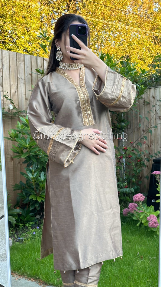 EXCLUSIVE SAMPLE - 2 Piece Bronze Raw Silk Suit