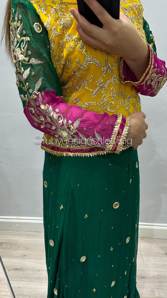 MAHIRAH - EXCLUSIVE SAMPLE 3 Piece Mint Peplum with Gharara