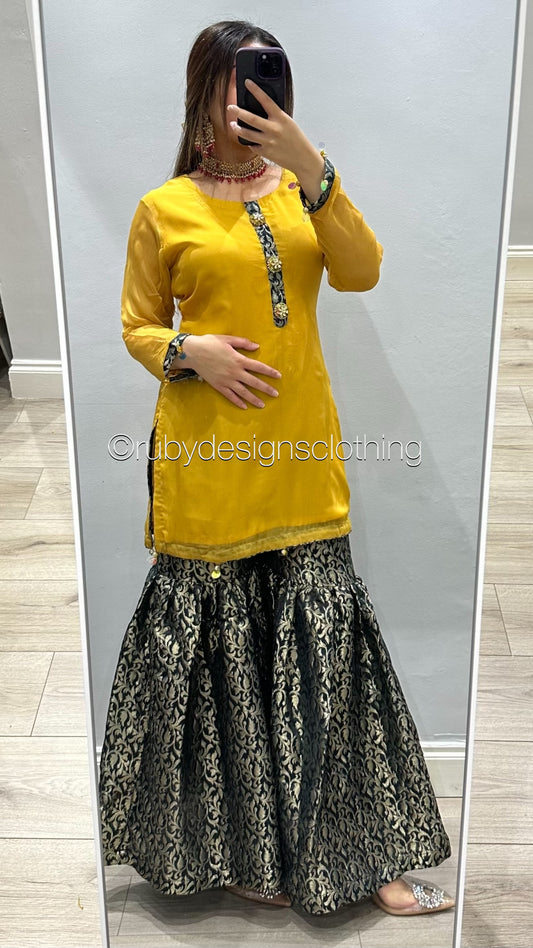 EXCLUSIVE SAMPLE - 3 Piece Yellow Chiffon Suit Shirt with Jamawar Gharara