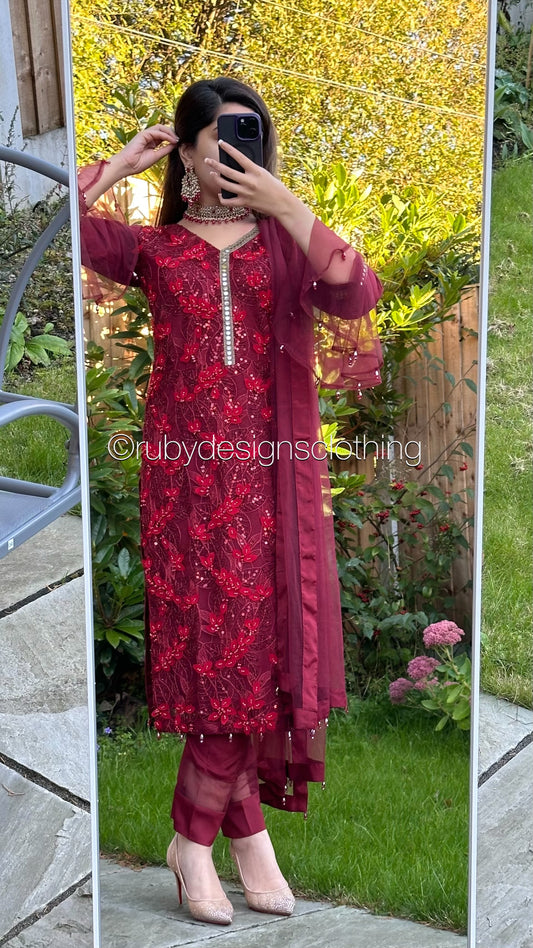 EXCLUSIVE SAMPLE - 3 Piece Heavy Embroidered Net with 3D Details