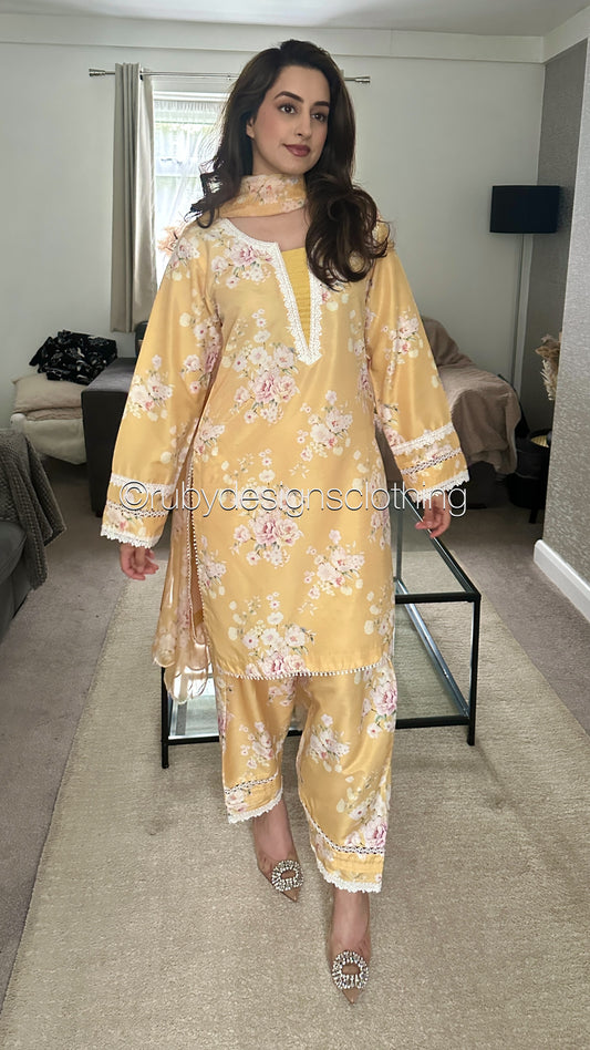 AYAH - 3 Piece Mustard Swiss Lawn Suit with Silk Dupatta