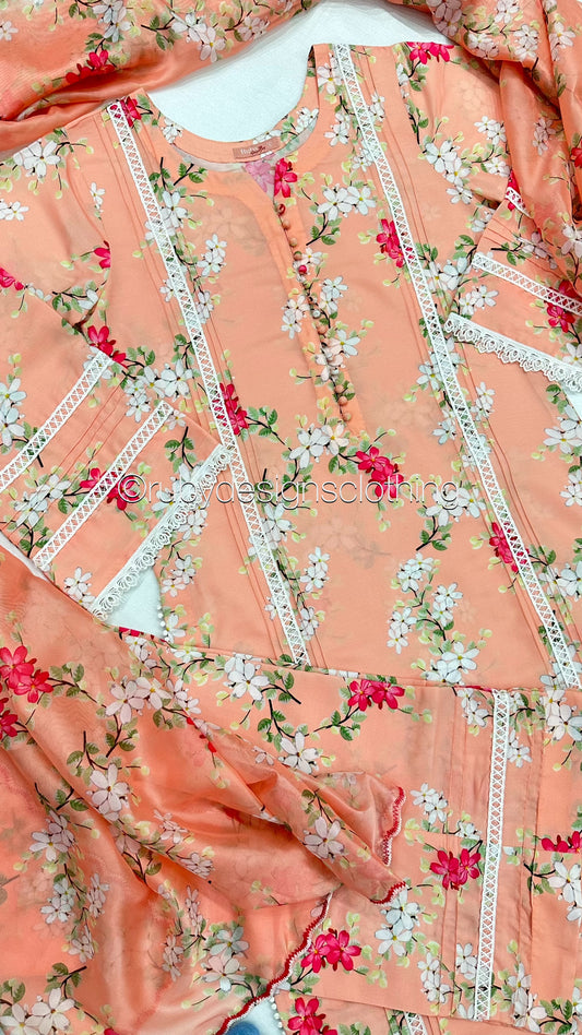 NYLA- 3 Piece Pink/Peach Swiss Lawn Suit with Silk Dupatta