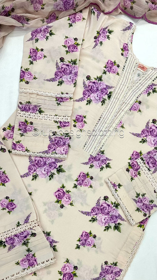BISMA - 3 Piece Lilac Floral Print Swiss Lawn Suit with Chiffon Dupatta