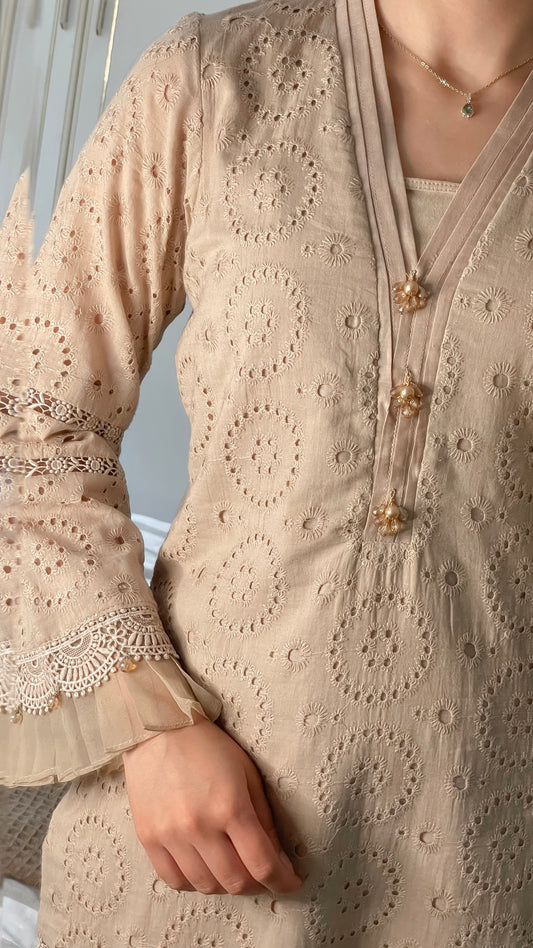 NIDA - 3 Piece Beige/Nude Chikankari Suit with Chiffon Dupatta