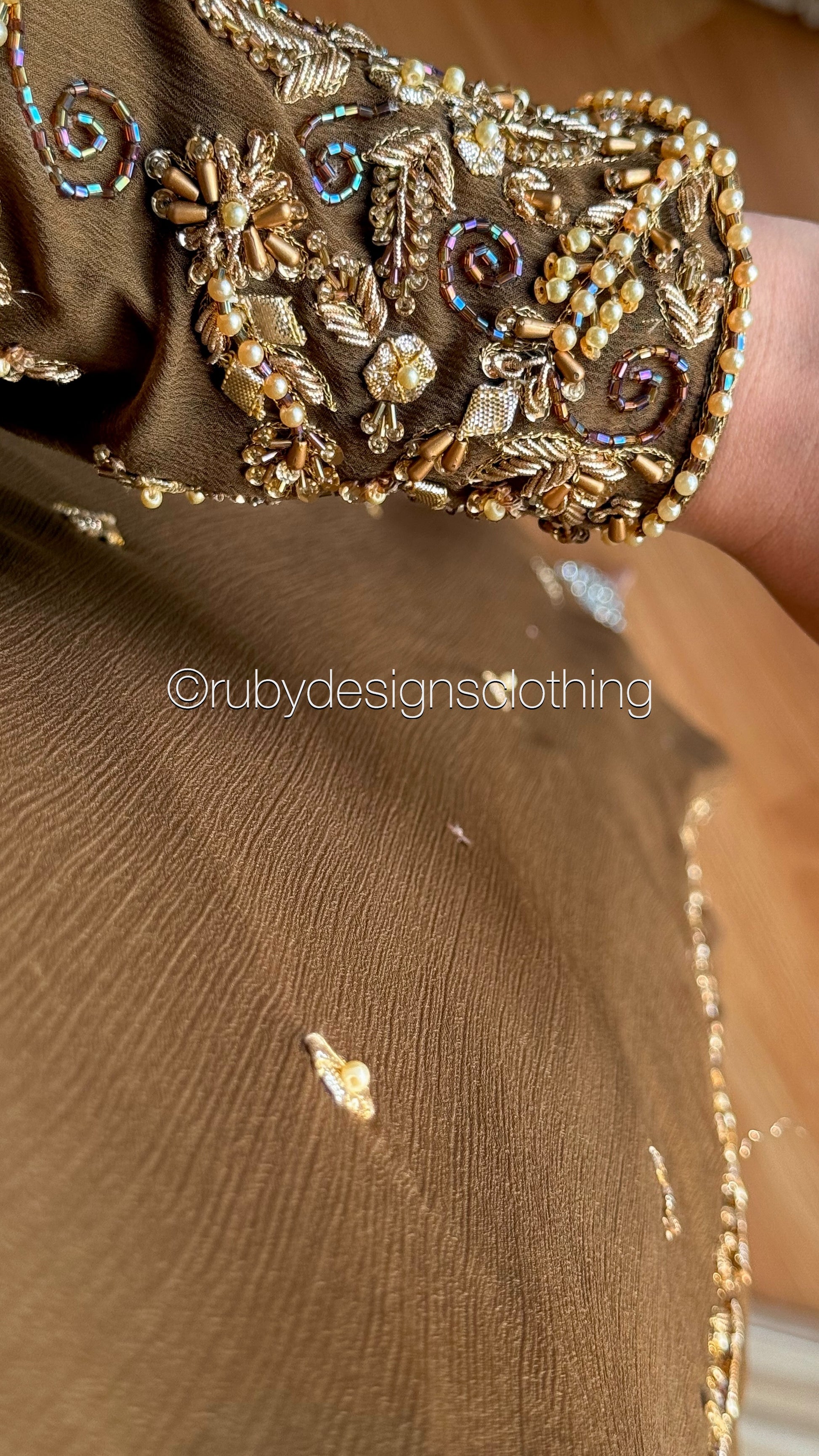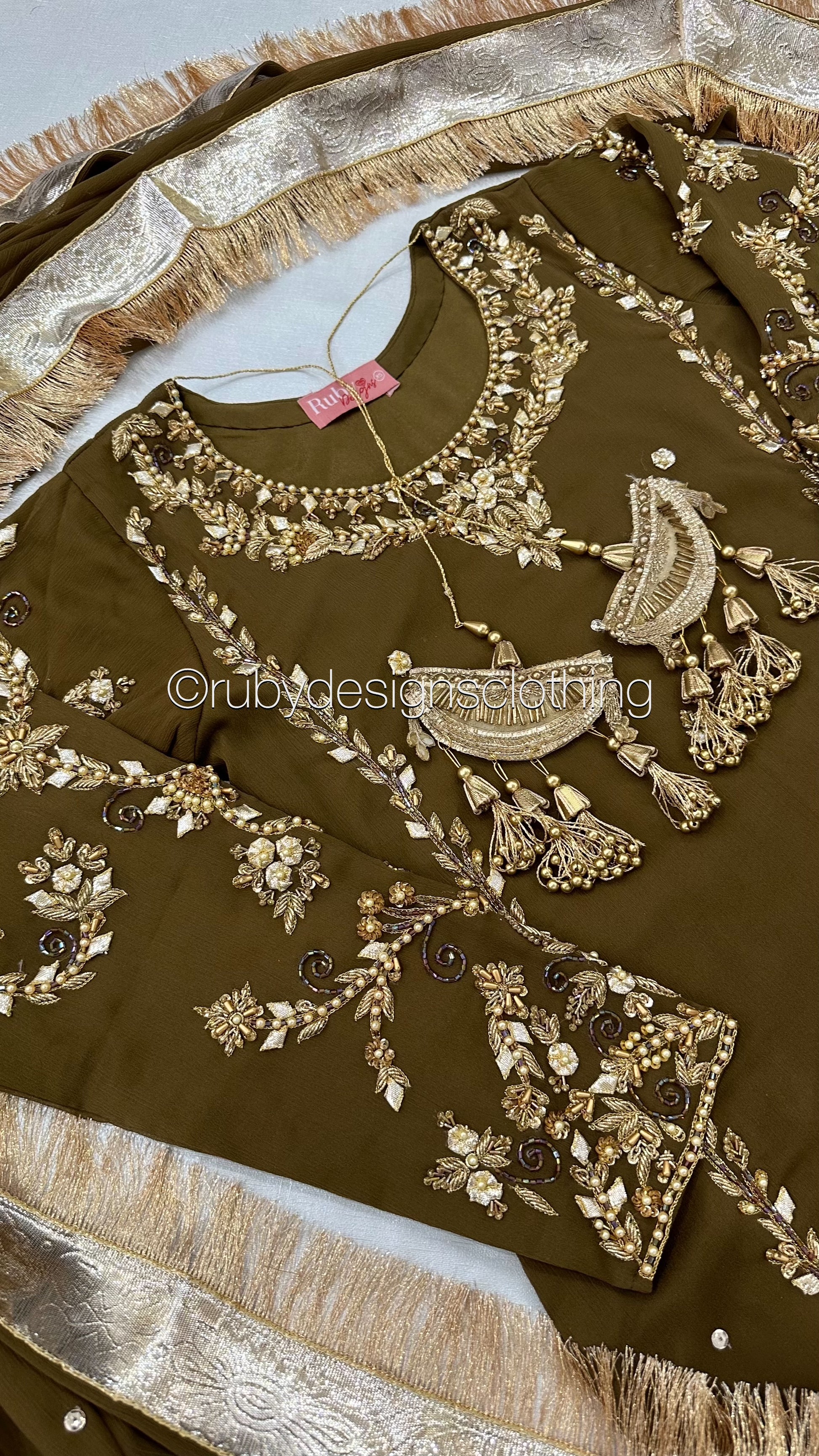 NAYRA Style 2 (Long Shirt) - 3 Piece Khaki Chiffon Suit with Trouser