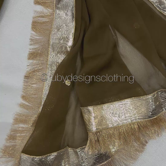 • Chiffon Dupatta with Gold Border and Kiran Lace