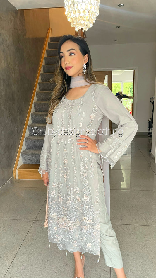 FARI - Heavy Embroidered Net 3 Piece Suit