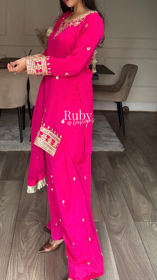 SAHARA - 3 Piece Magenta Luxury Silk Suit with Cutdana Handwork
