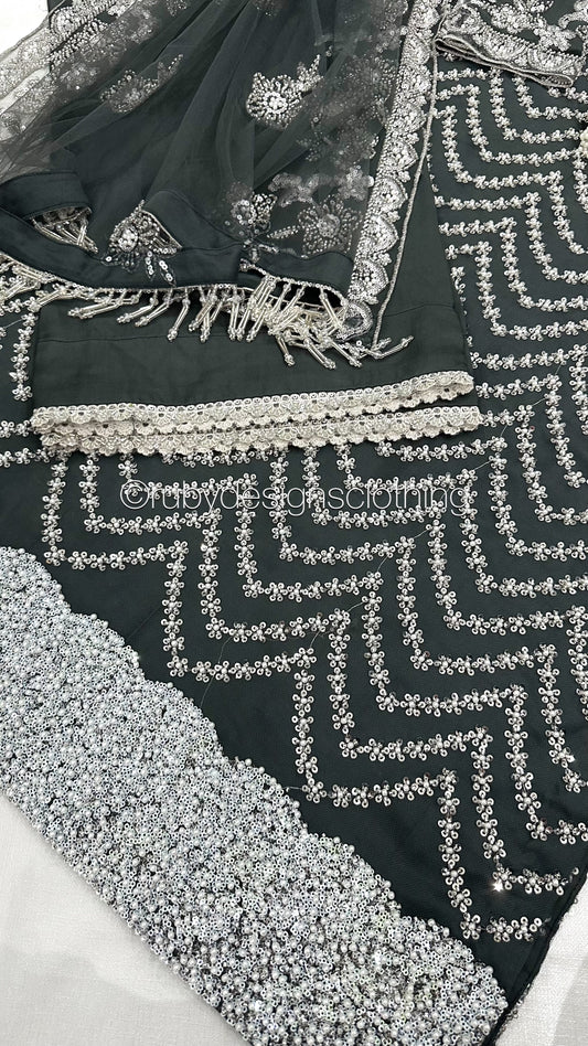 LIYANA - 3 Piece Black Luxury Silk Suit with Cutdana Handwork