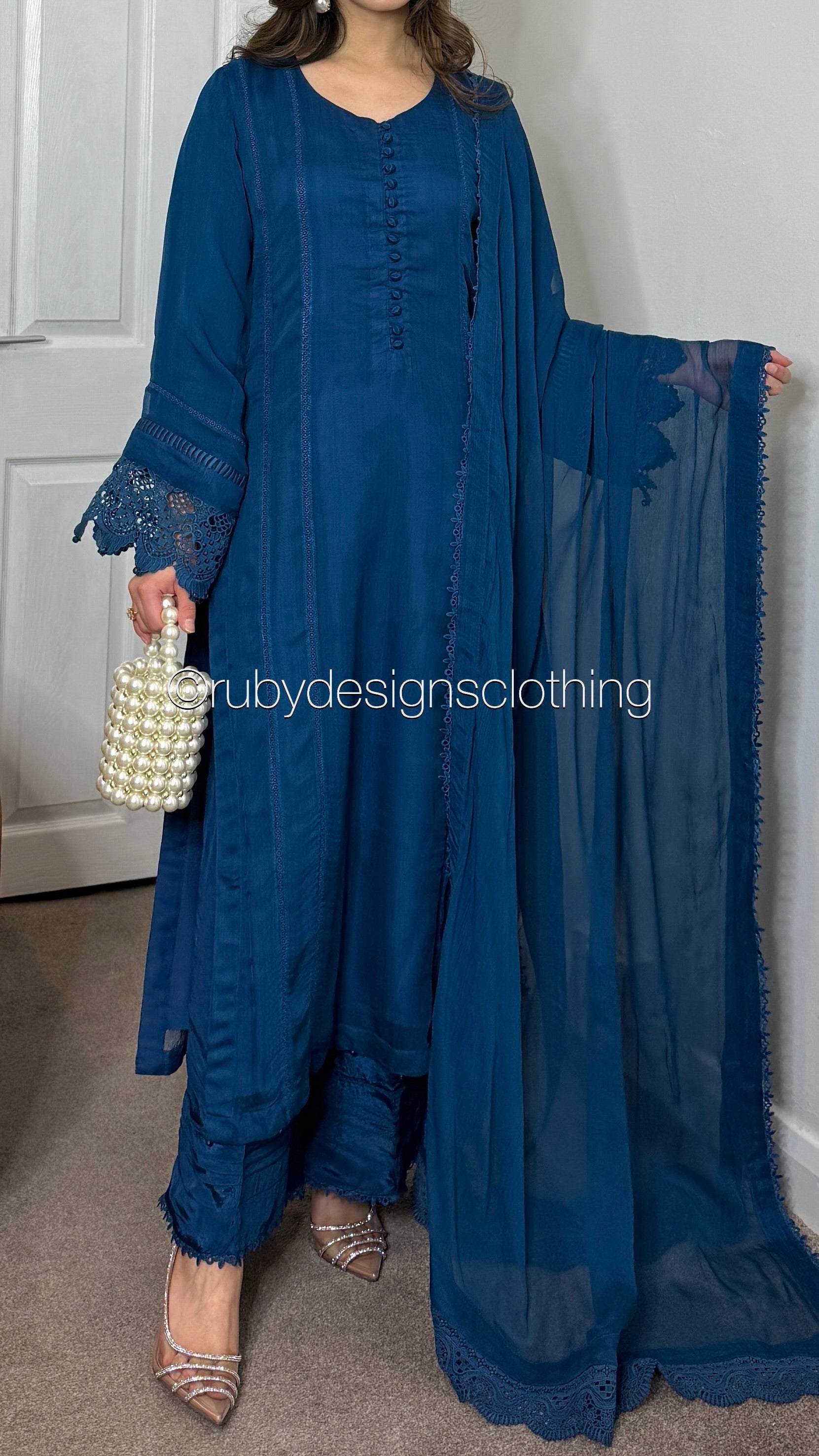 MINHA Teal - 3 Piece Chiffon Suit with Cutwork