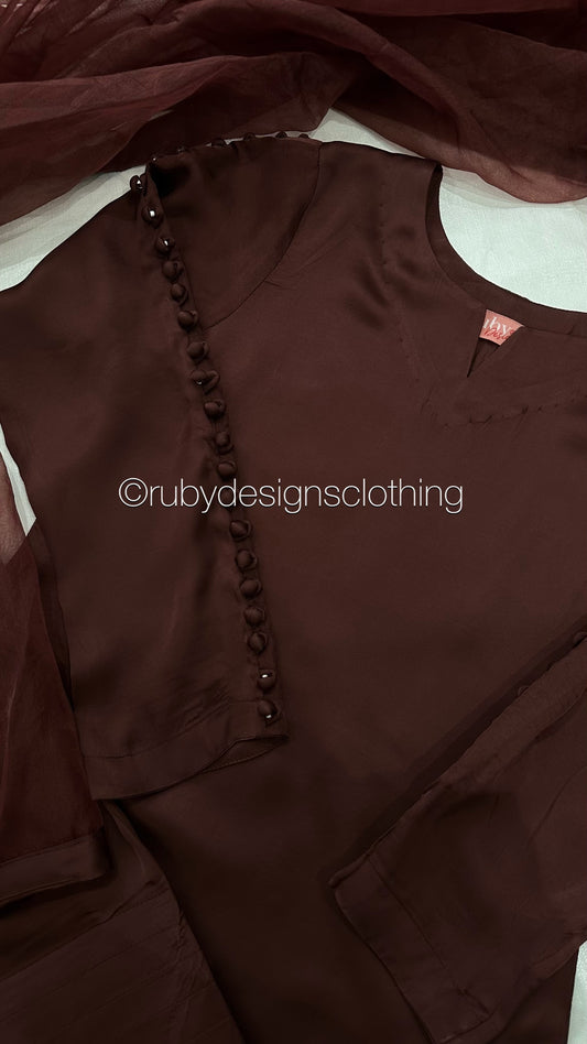 MISSING ITEM (TROUSER and SCARF) - ZIMAL Mocha - 3 Piece Silk Suit with Farshi Shalwar