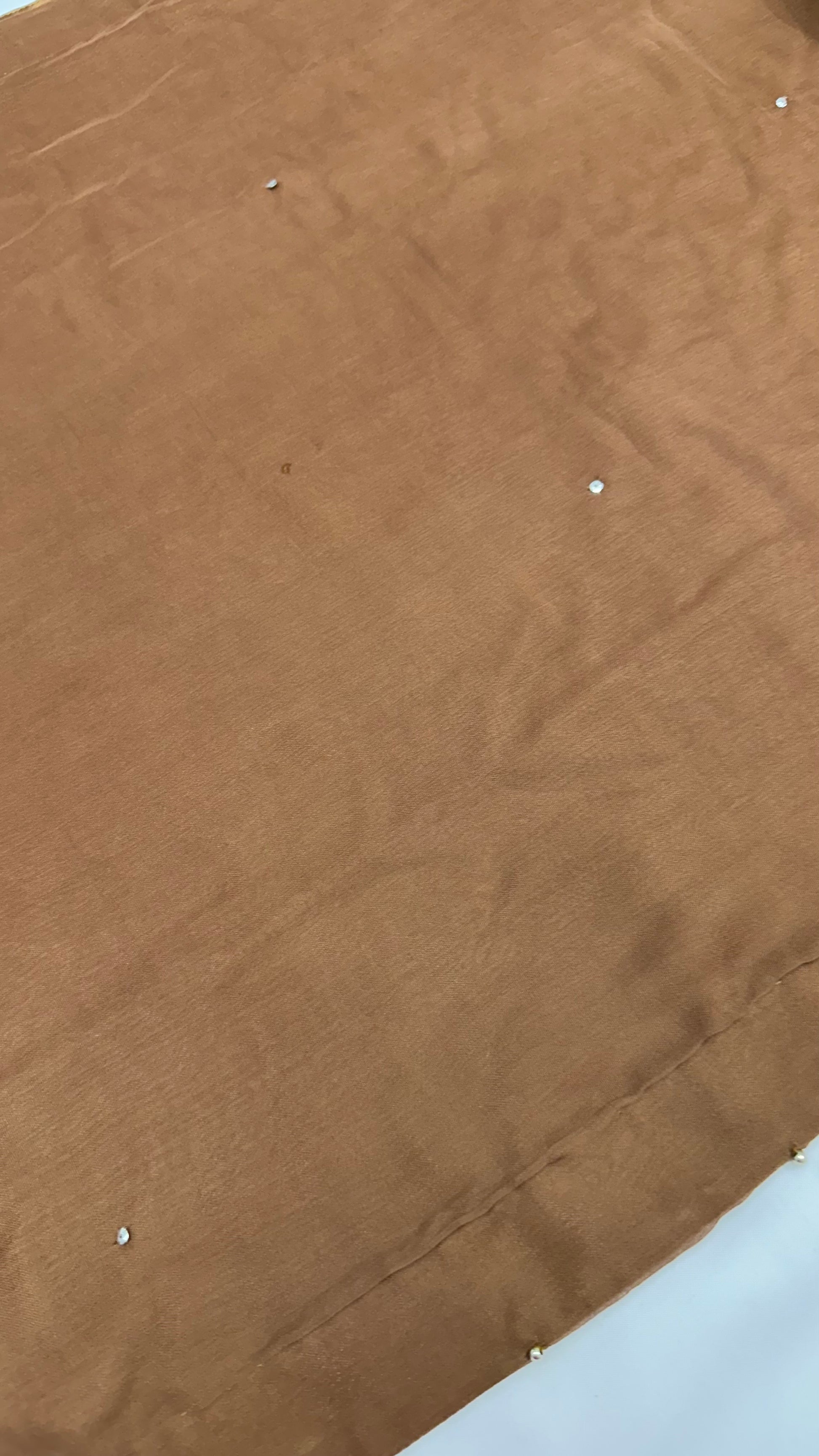 MINOR DEFECT - HAYA Caramel - 3 Piece Chiffon Suit with Hand Embellished Neckline